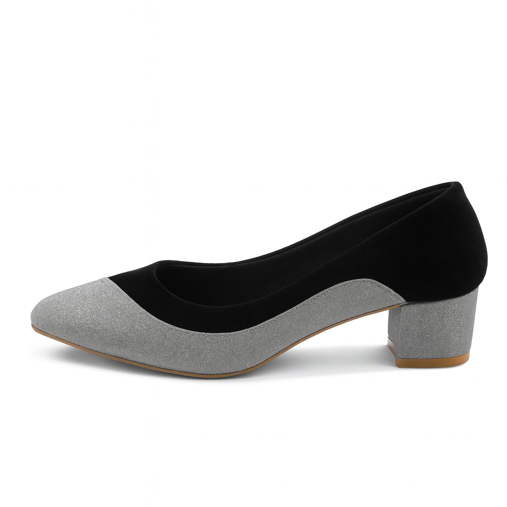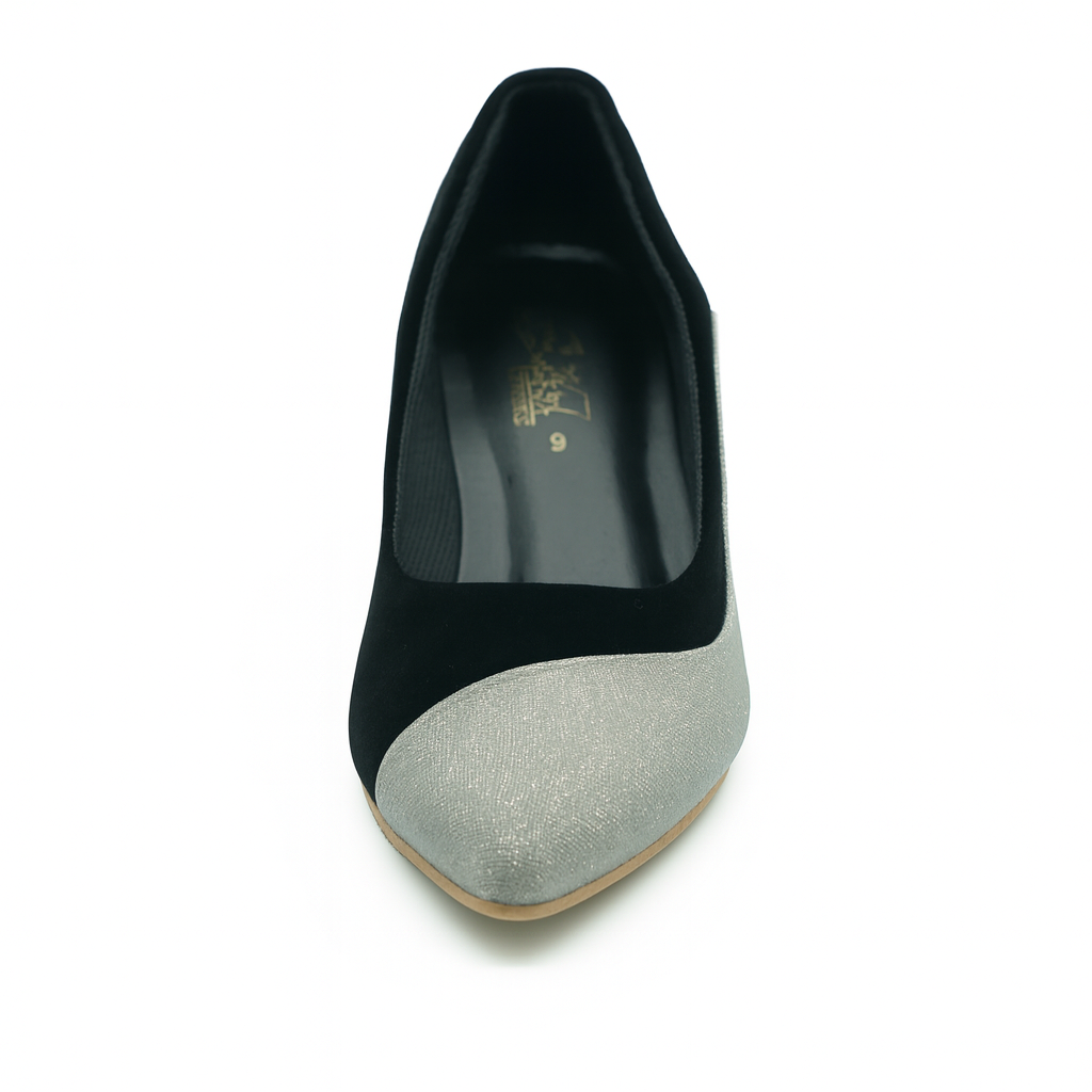 Shine with style in these Black & Silver Pumps, crafted for women who love a blend of sophistication and glamour. The chic two-tone design makes them perfect for both formal and festive occasions.