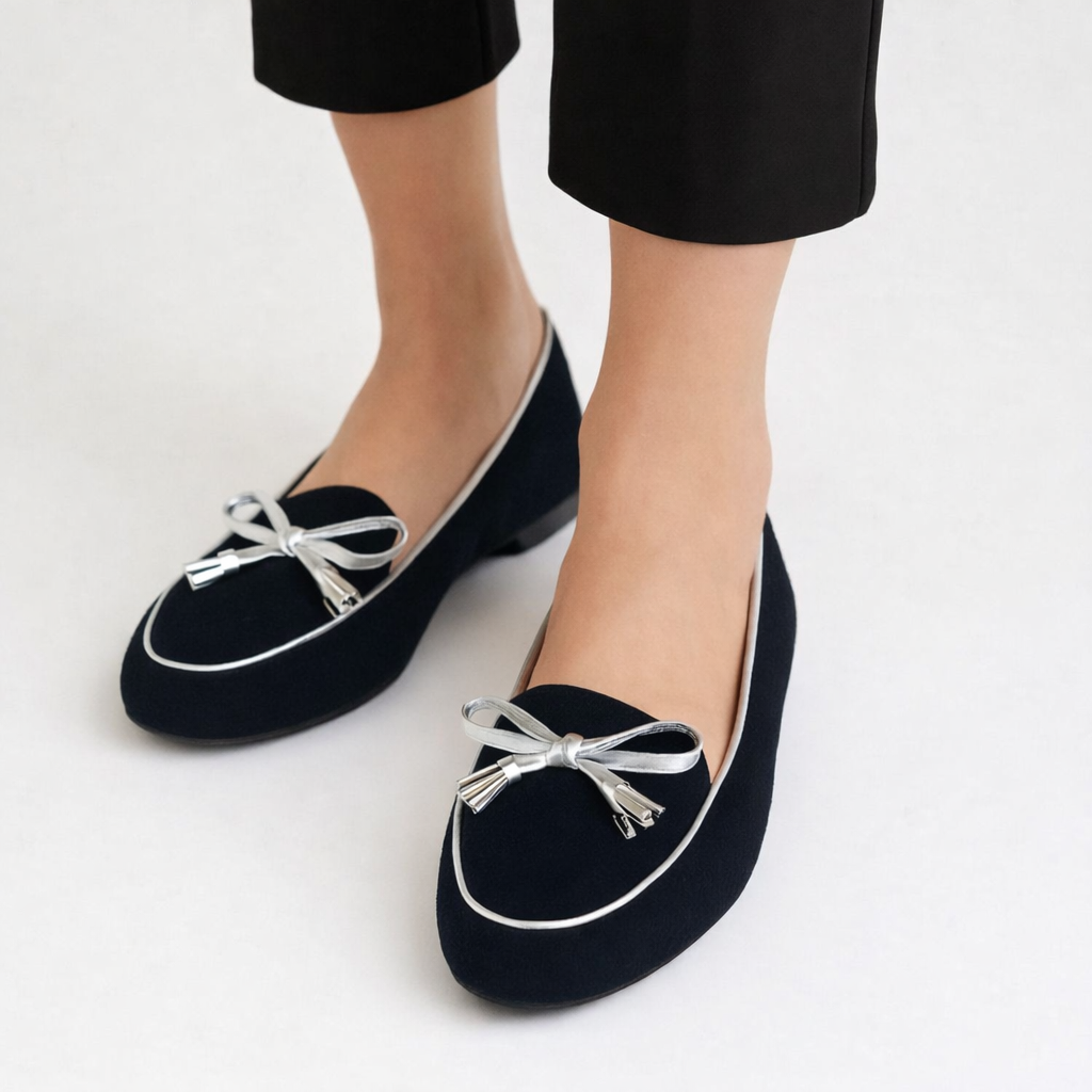 Black Silver Bow Flats K0164