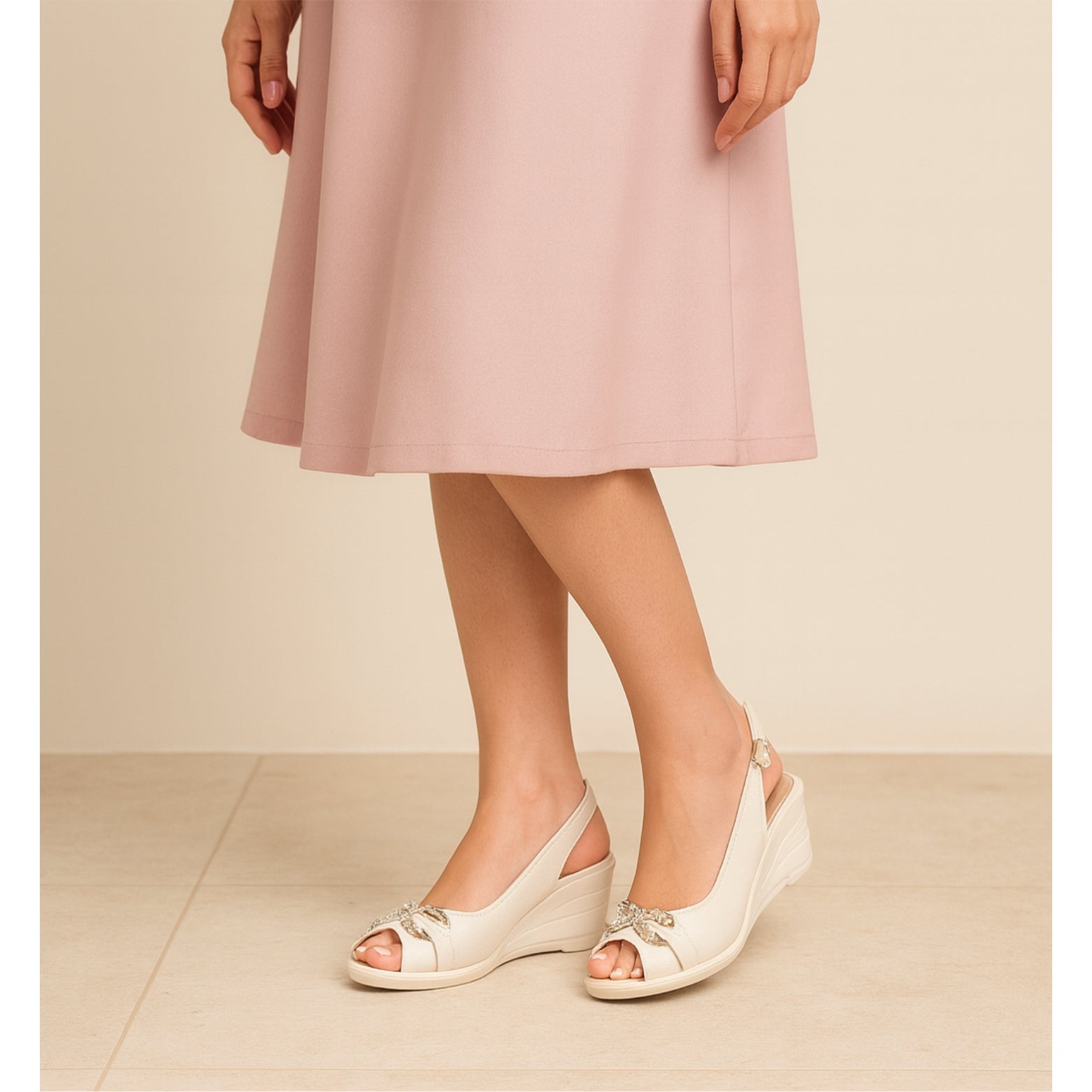 White Wedge Slingback Sandals with Crystal Buckle 102